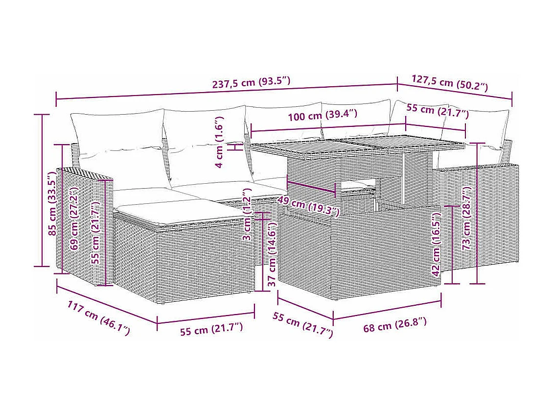 Salon complet de jardin Canapé 2 places et 2 fauteuils