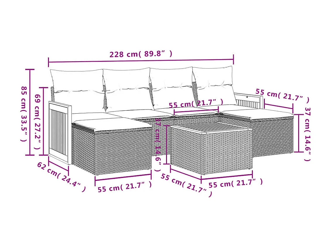 Salon de jardin avec coussins 7 pcs gris résine tressée