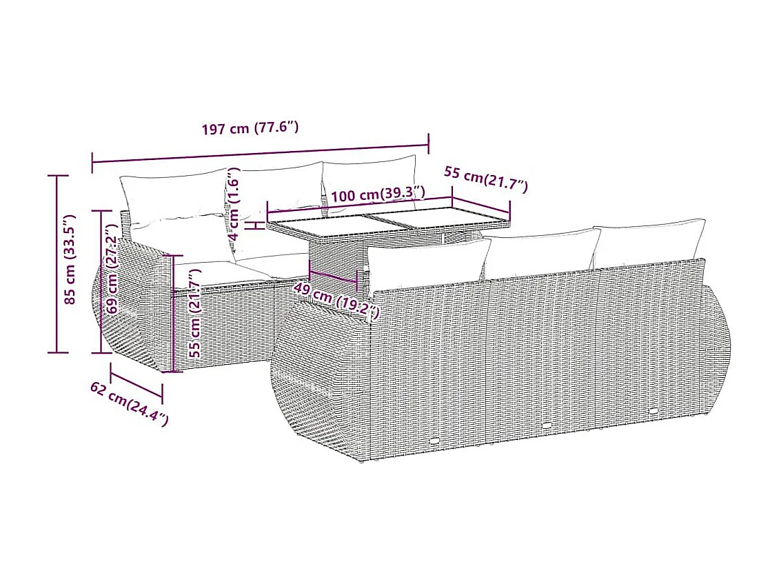 Salon complet de jardin Canapé 2 places et 2 fauteuils