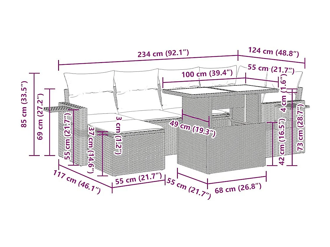 Salon complet de jardin Canapé 2 places et 2 fauteuils