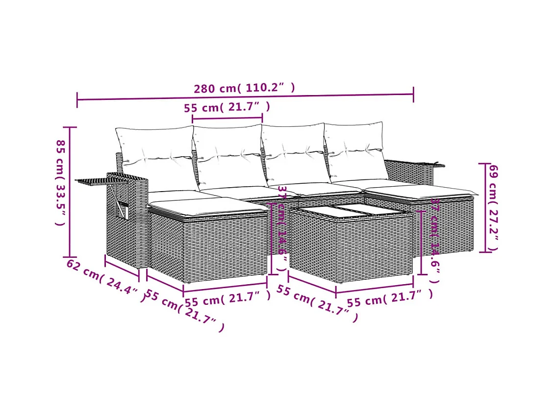 Salon de jardin avec coussins 6 pcs marron résine tressée