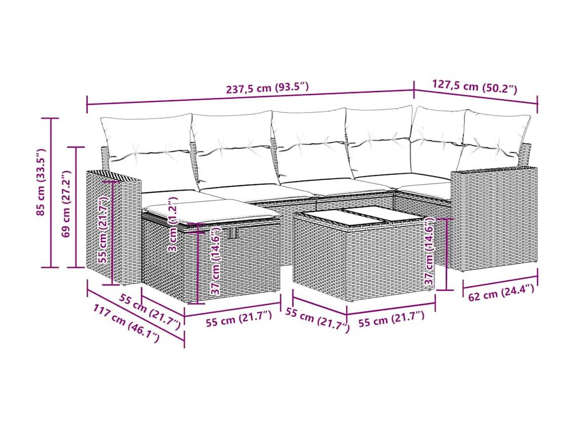 Salon de jardin avec coussins 7 pcs marron résine tressée