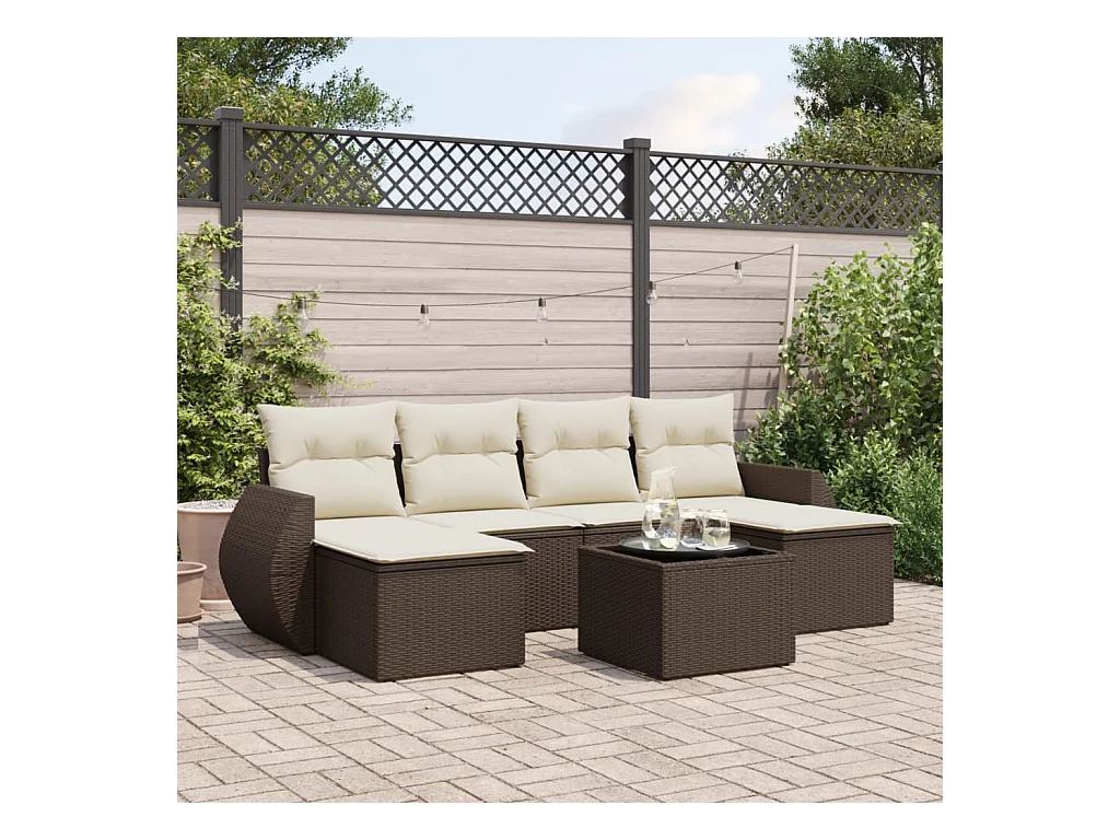 Salon de jardin avec coussins 7 pcs marron résine tressée
