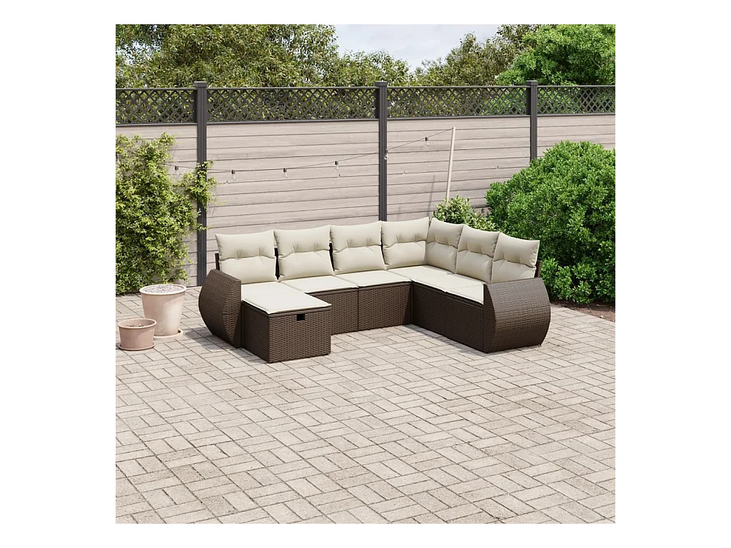 Salon de jardin avec coussins 7 pcs marron résine tressée