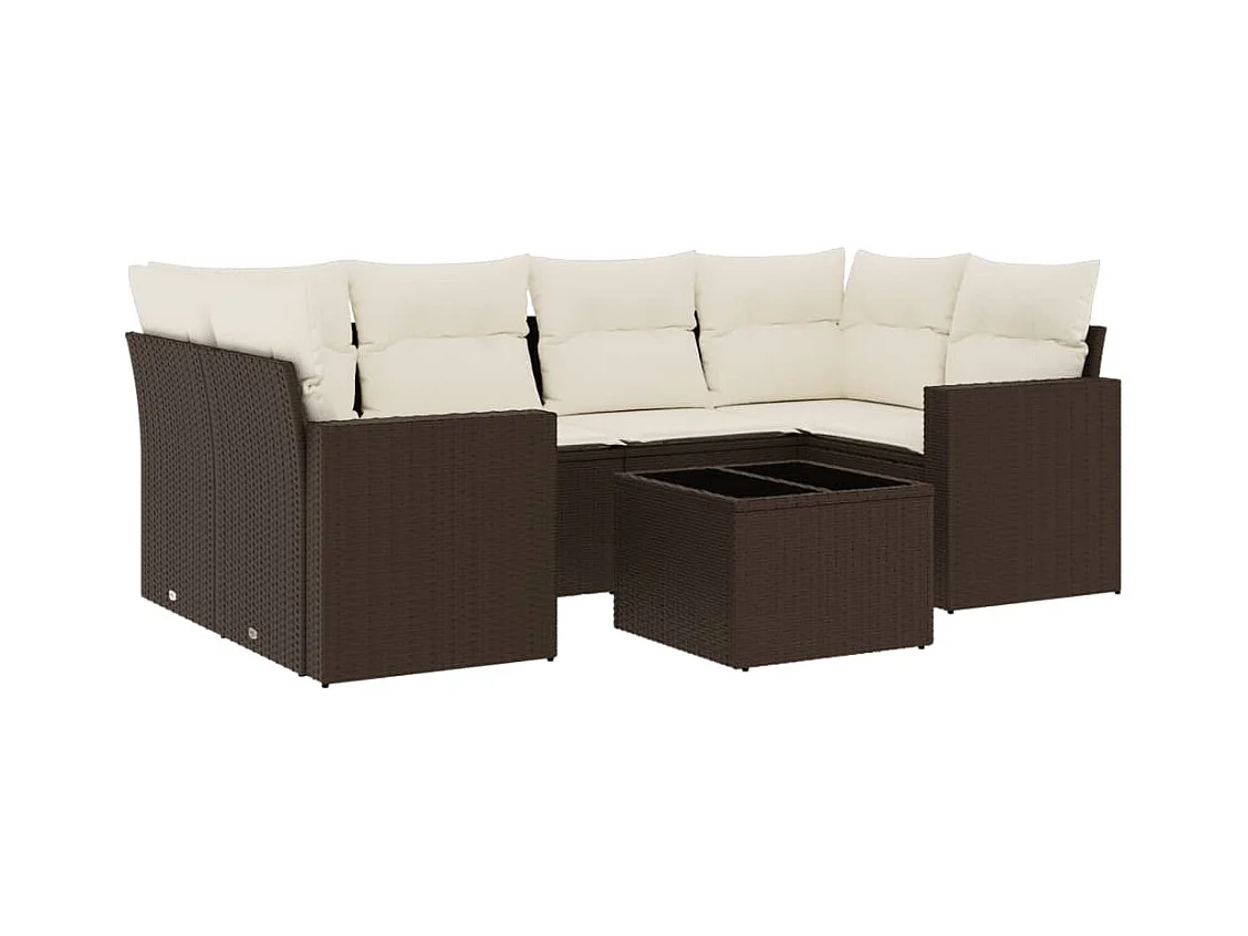 Salon de jardin avec coussins 7 pcs marron résine tressée