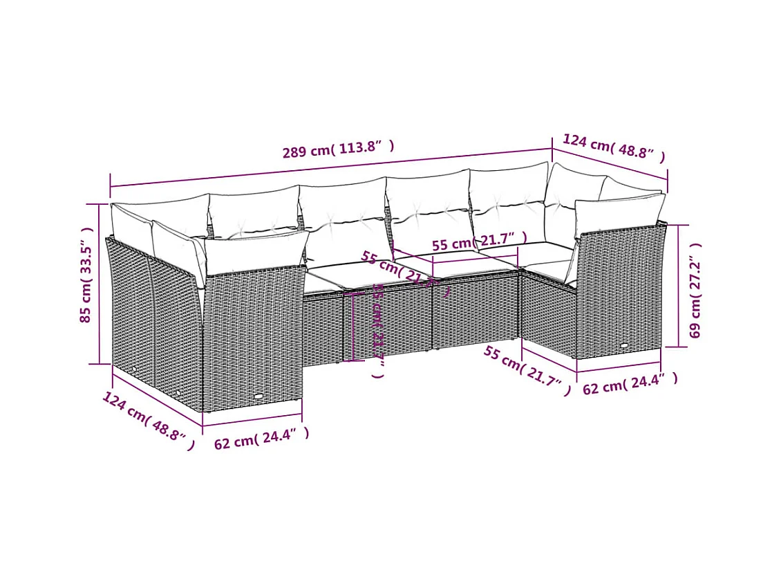 Salon de jardin avec coussins 7 pcs marron résine tressée