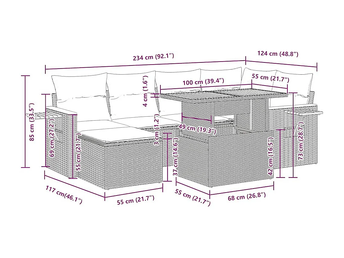 Salon de jardin avec coussins 7 pcs noir résine tressée acacia