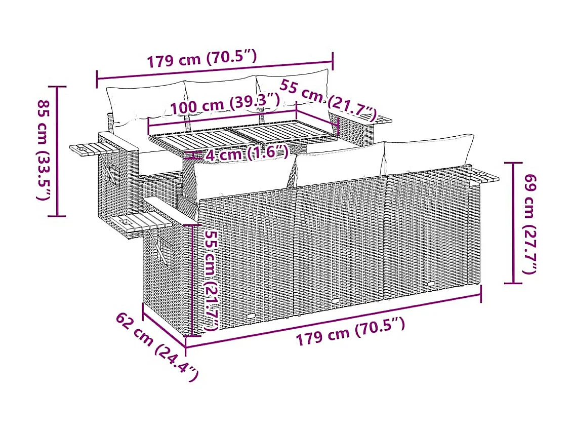 Salon complet de jardin Canapé 2 places et 2 fauteuils