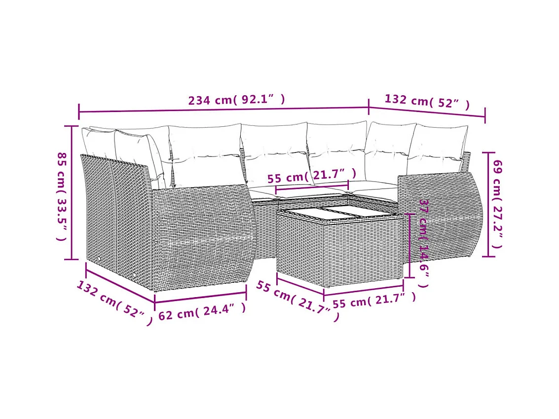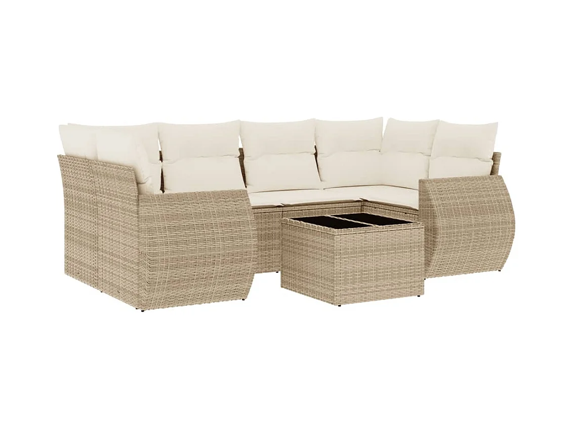 Salon de jardin avec coussins 7 pièces beige résine tressée