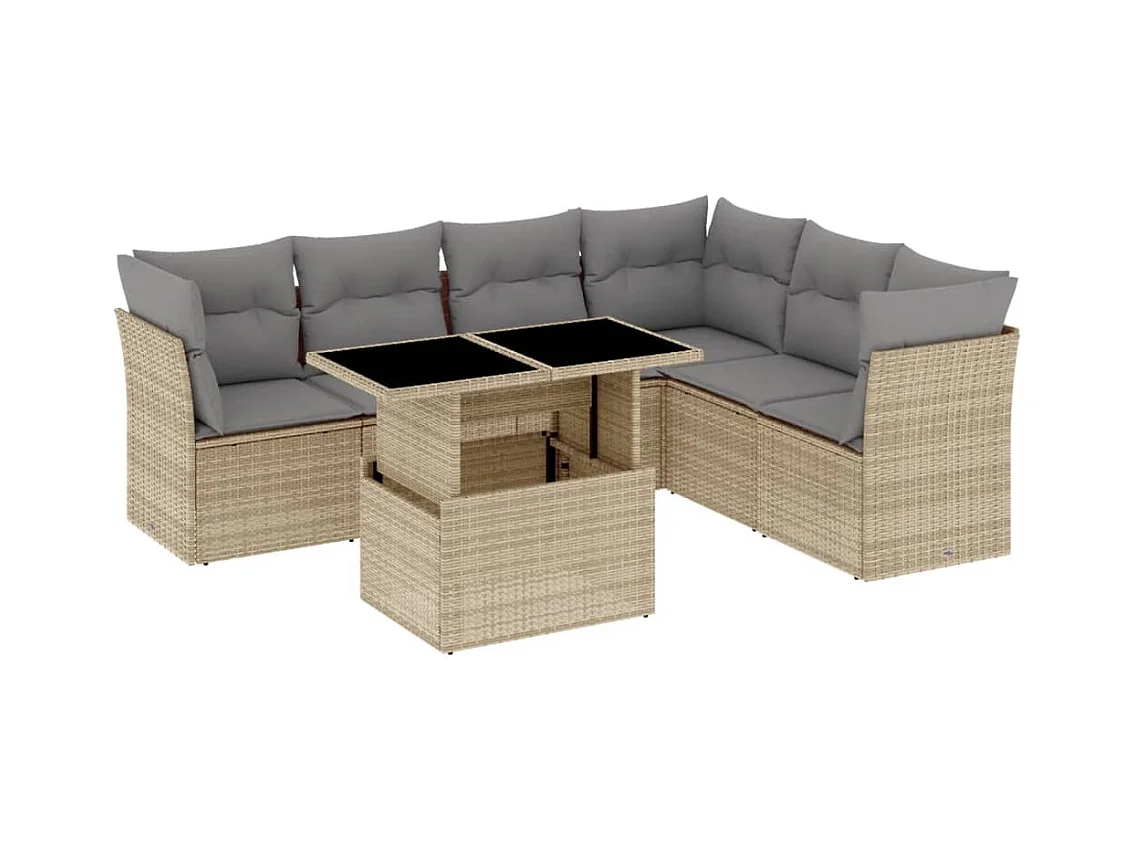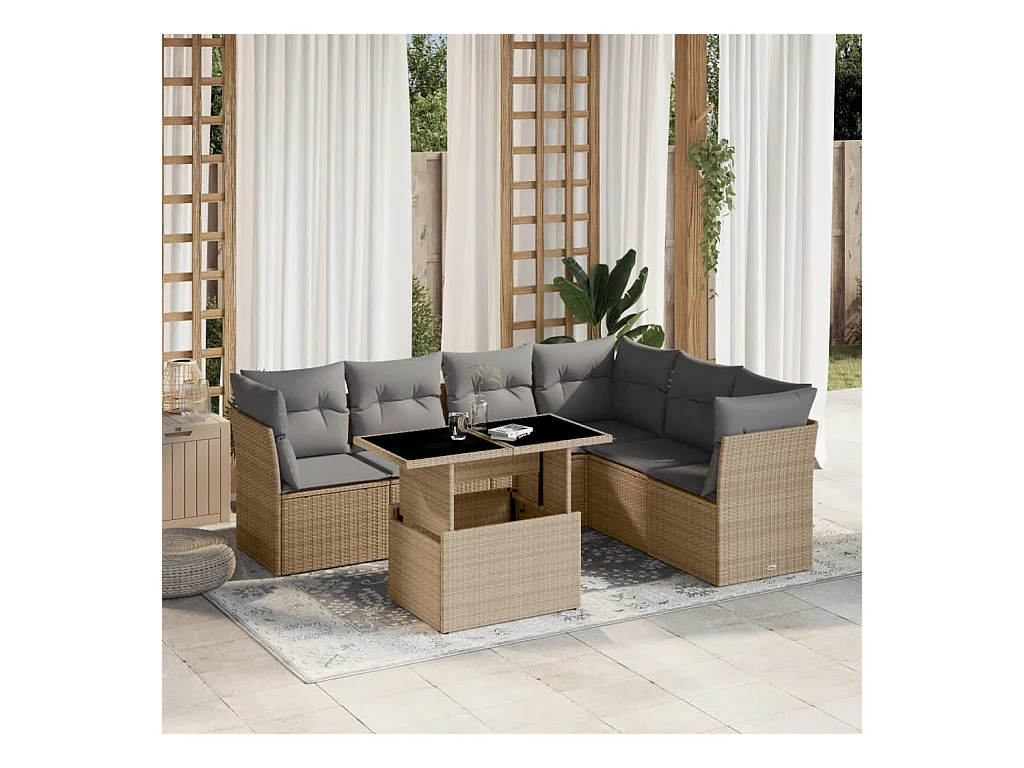 Salon de jardin avec coussins 7 pièces beige résine tressée