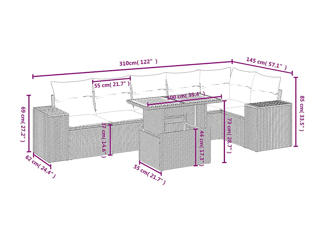 Salon de jardin avec coussins 7 pièces beige résine tressée