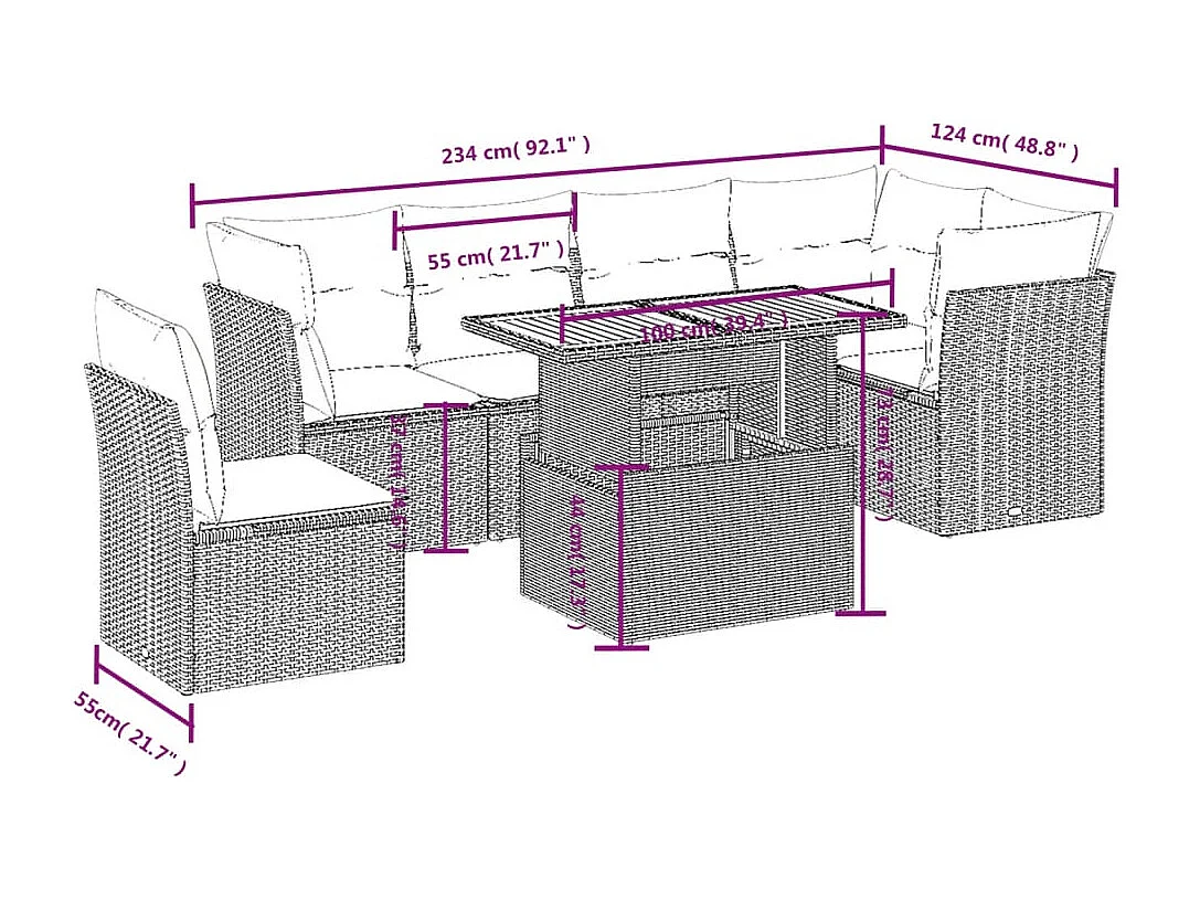 Salon complet de jardin Canapé 2 places et 2 fauteuils