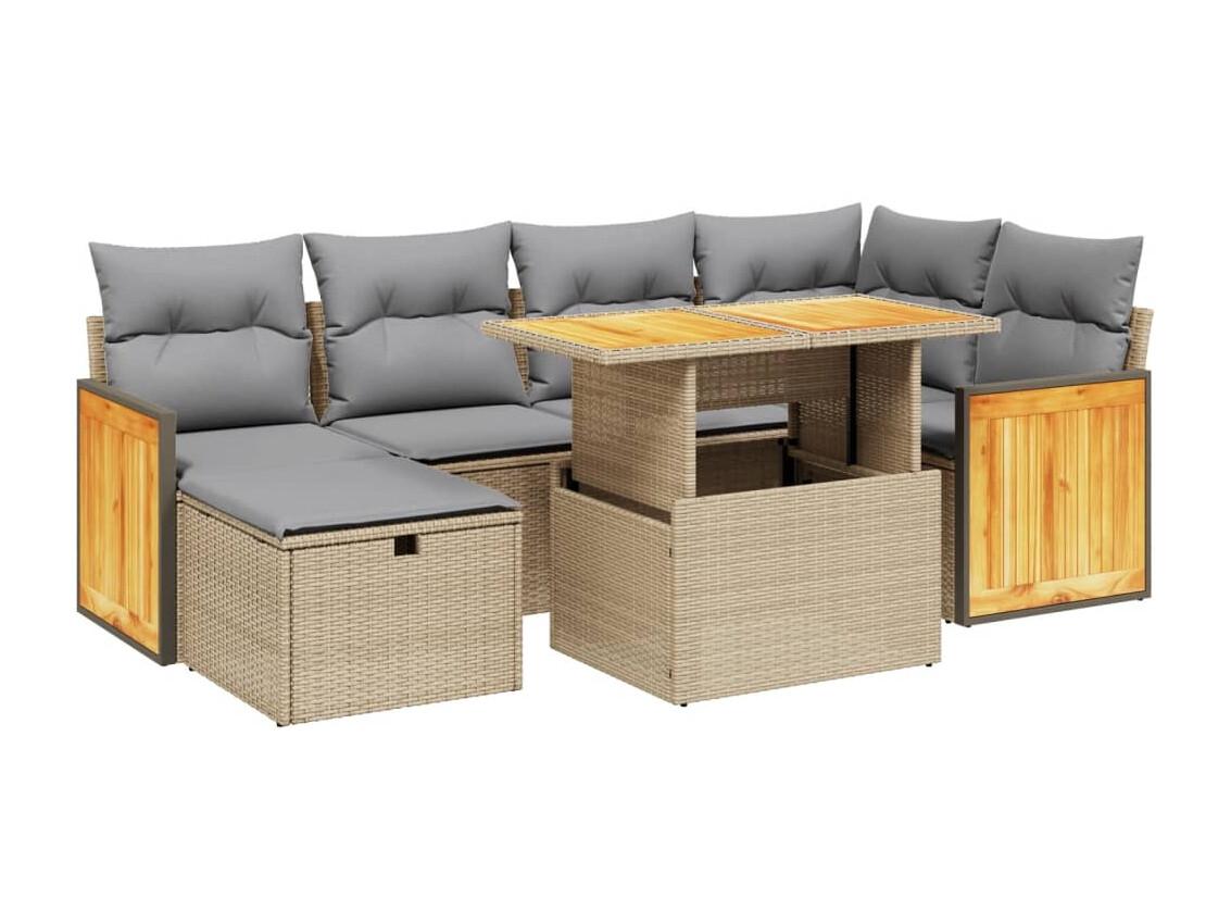 Salon de jardin avec coussins 7 pièces beige résine tressée acacia