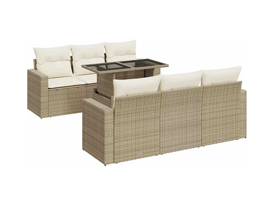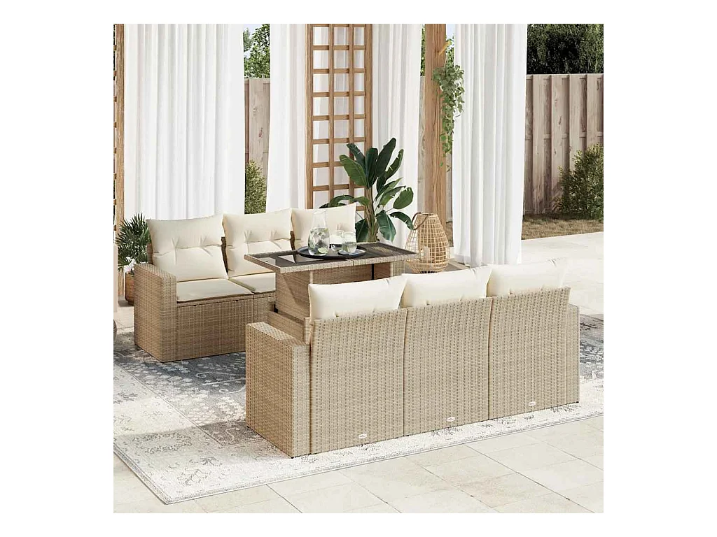 Salon de jardin avec coussins 7 pièces beige résine tressée