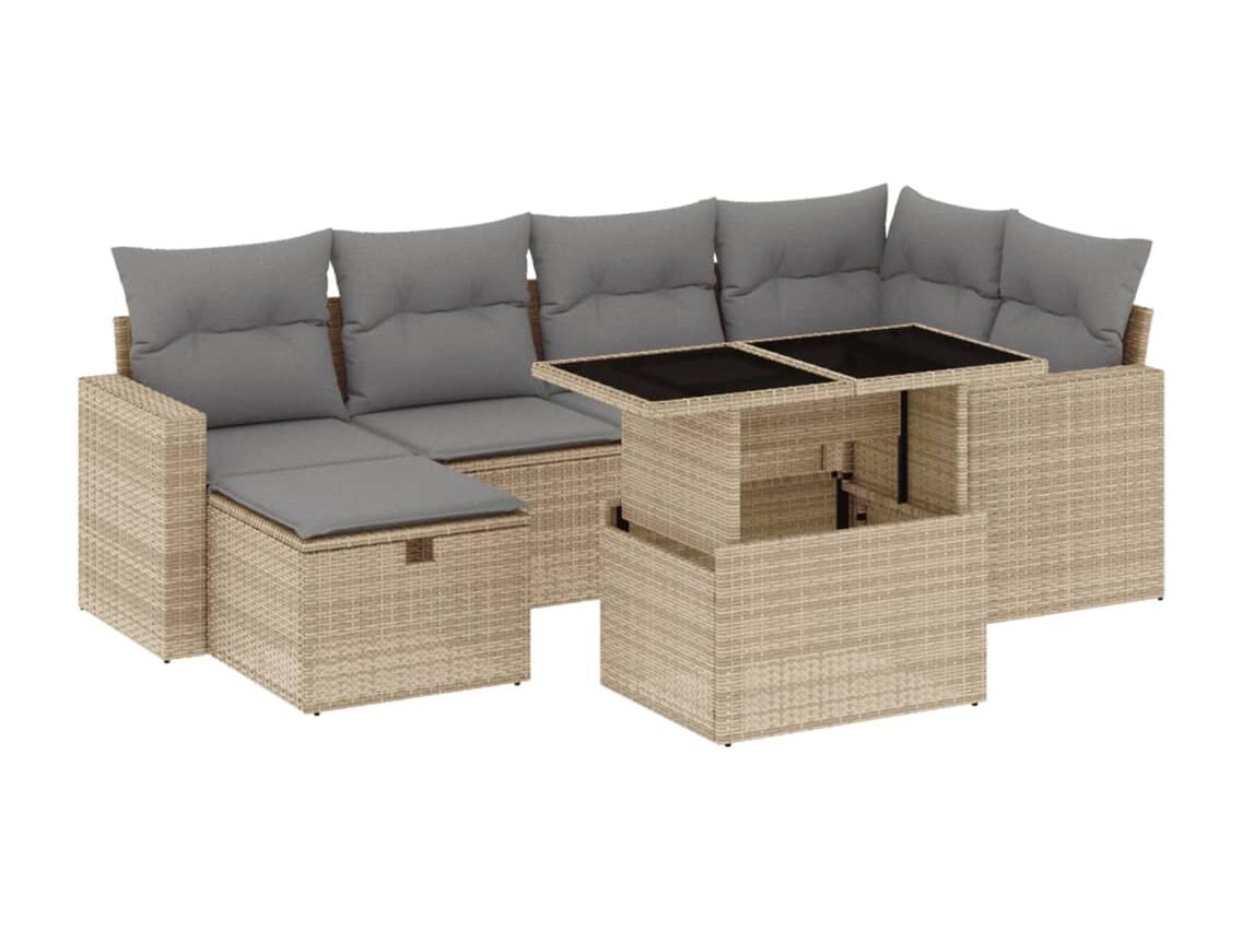 Salon de jardin avec coussins 7 pièces beige résine tressée acacia