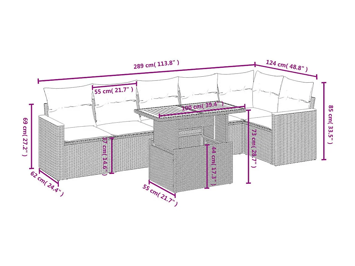 Salon complet de jardin Canapé 2 places et 2 fauteuils