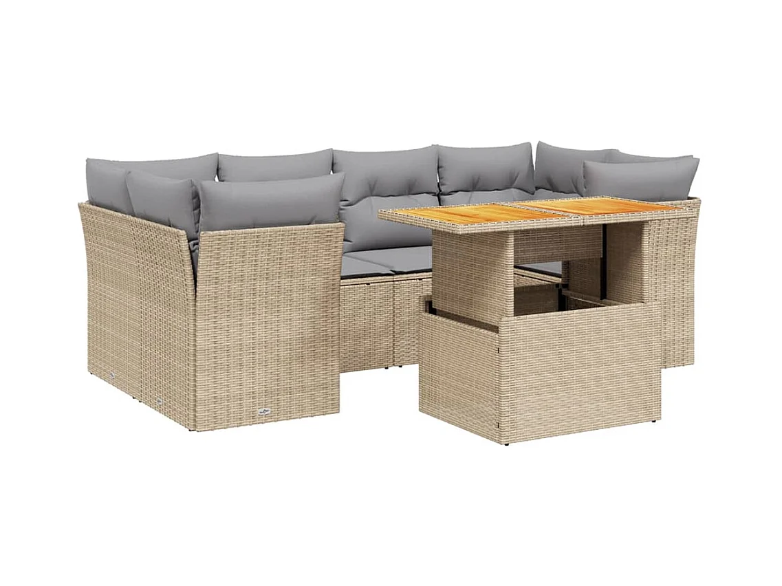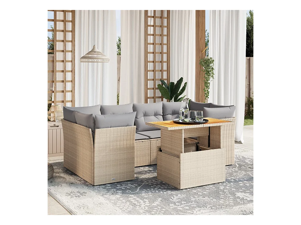 Salon de jardin avec coussins 7 pièces beige résine tressée