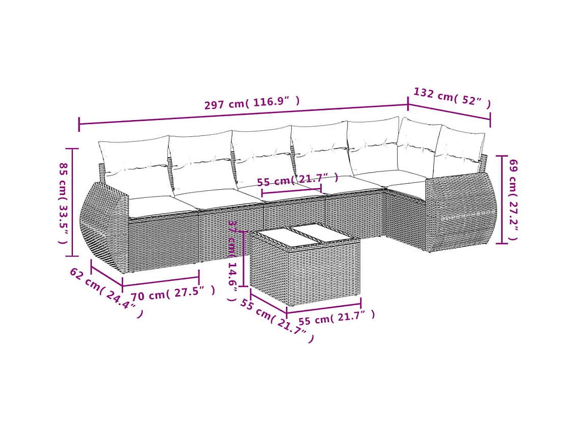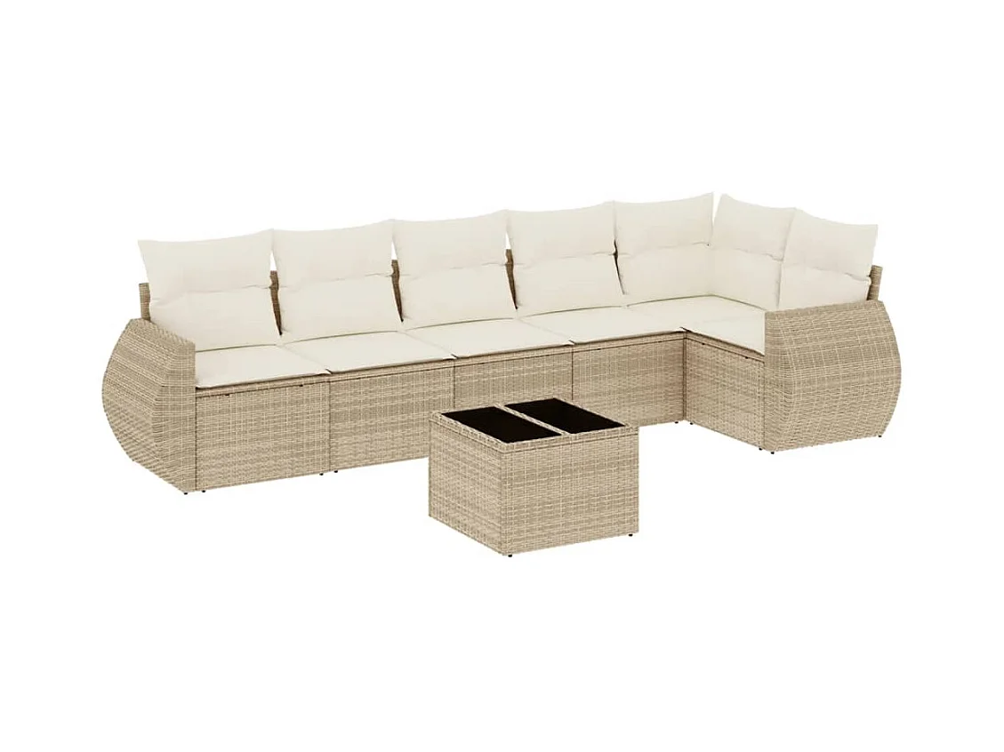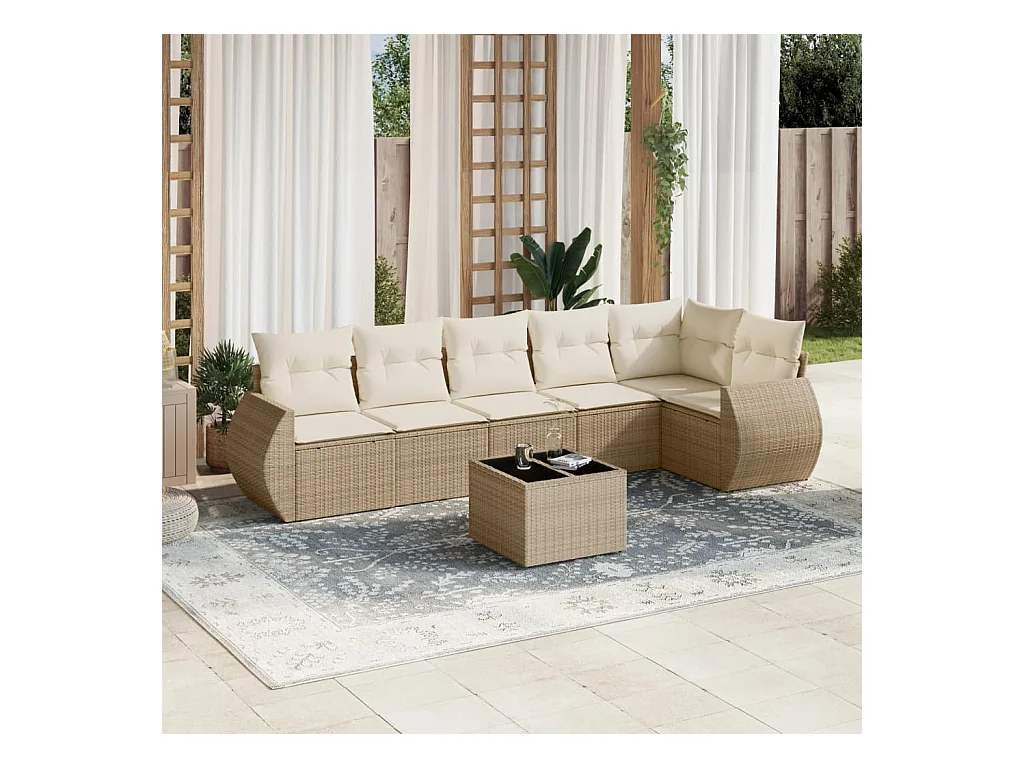 Salon de jardin avec coussins 7 pièces beige résine tressée