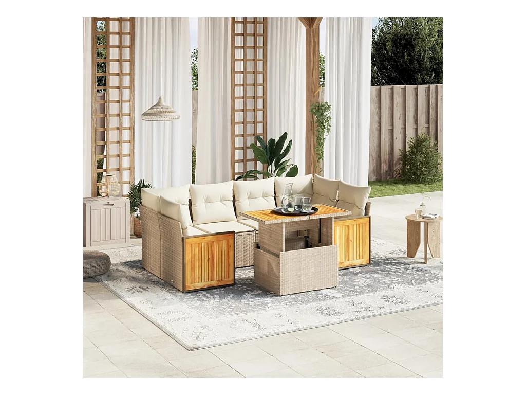 Salon de jardin avec coussins 7 pièces beige résine tressée