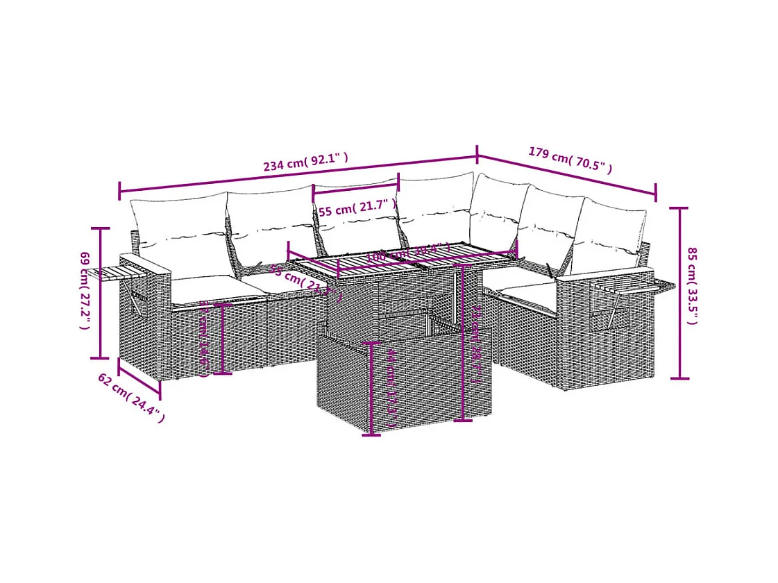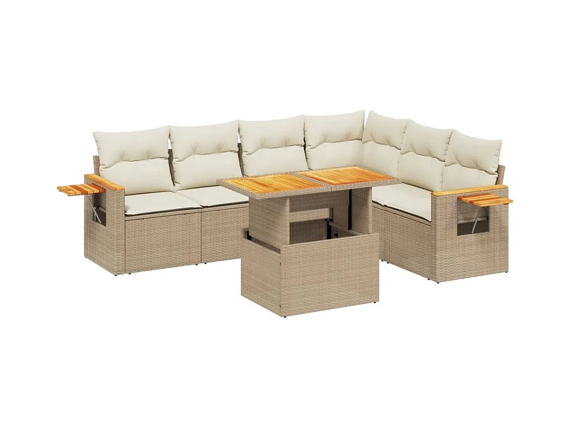 Salon de jardin avec coussins 7 pièces beige résine tressée