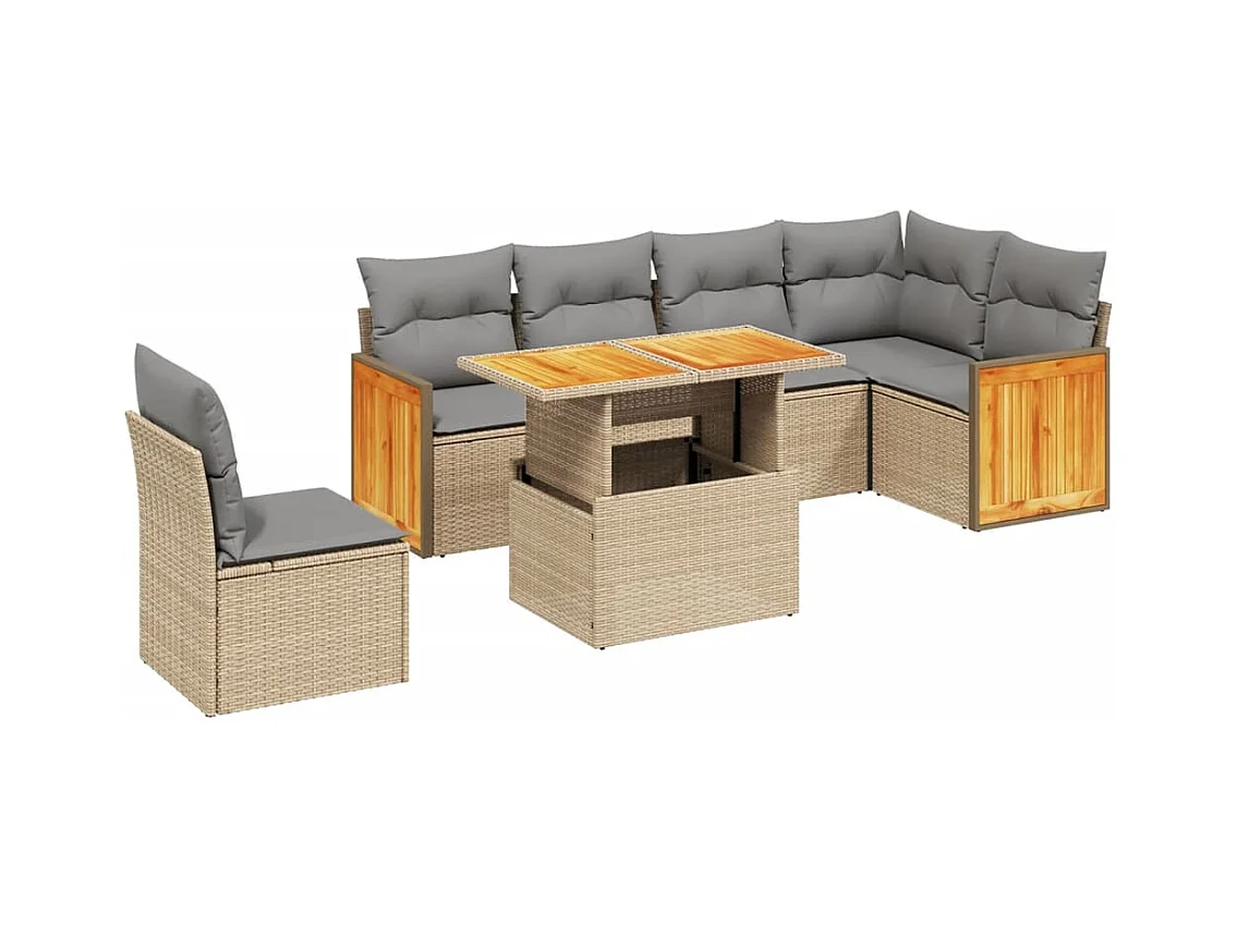 Salon de jardin avec coussins 7 pièces beige résine tressée