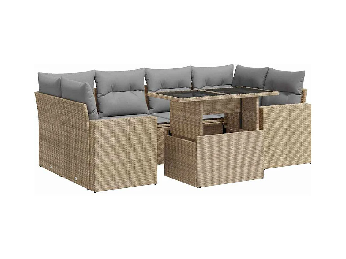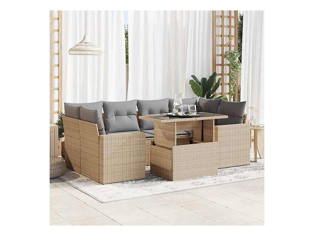 Salon de jardin avec coussins 7 pièces beige résine tressée