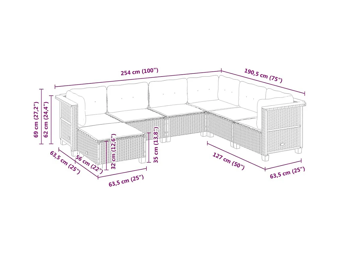 Salon de jardin avec coussins 7 pièces beige résine tressée