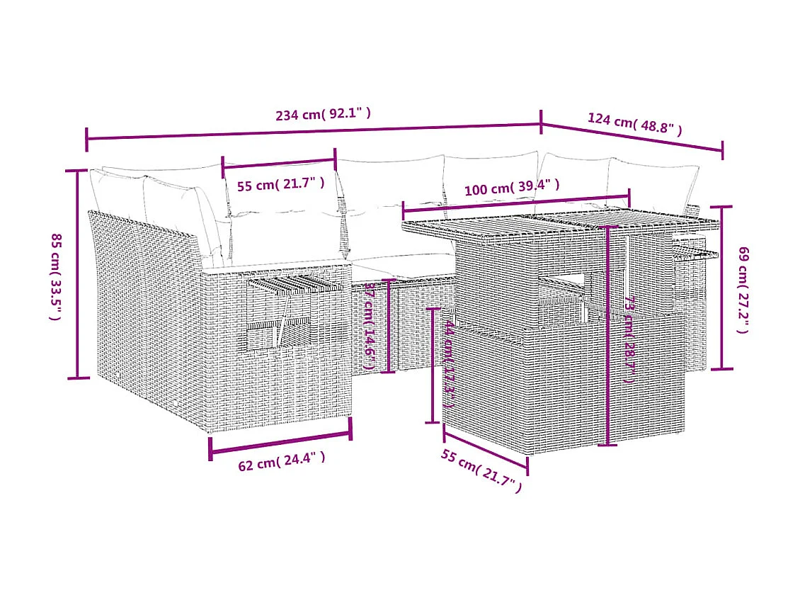 Salon complet de jardin Canapé 2 places et 2 fauteuils