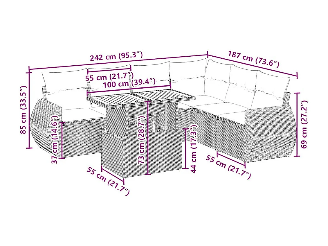 Salon complet de jardin Canapé 2 places et 2 fauteuils