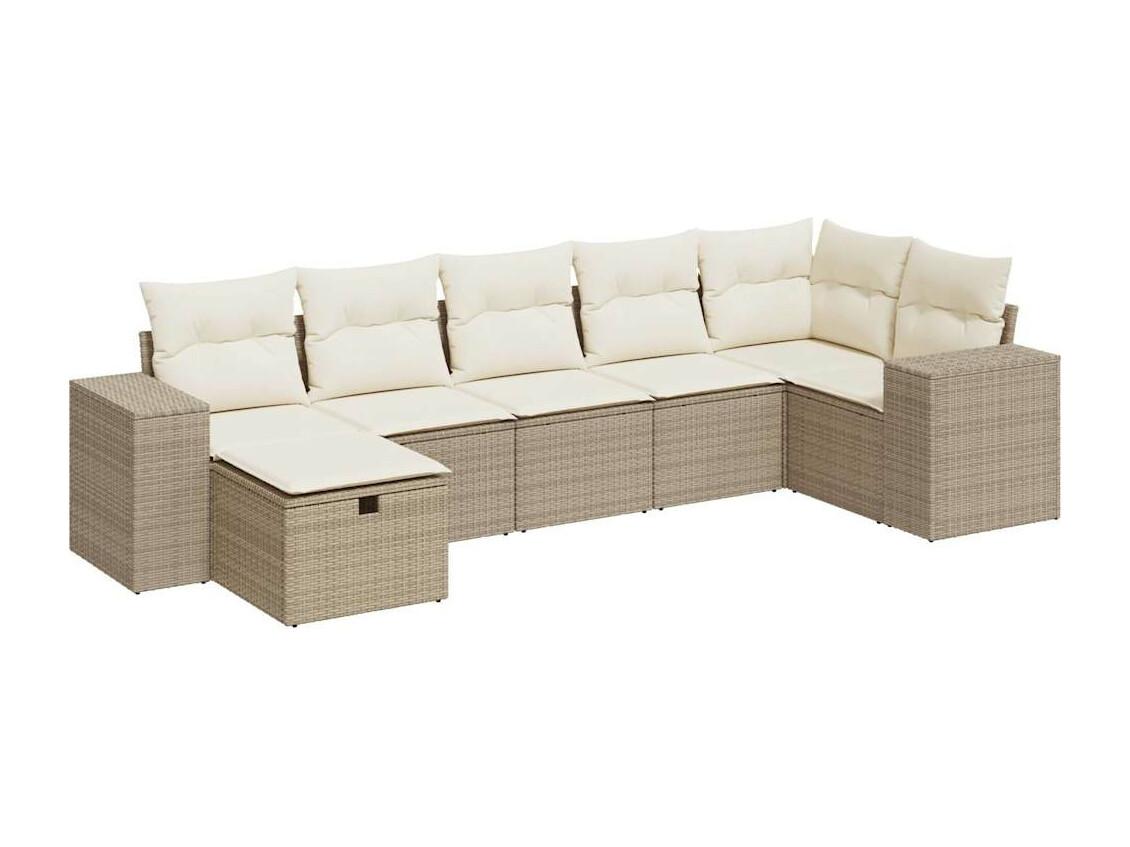 Salon de jardin avec coussins 7 pièces beige résine tressée