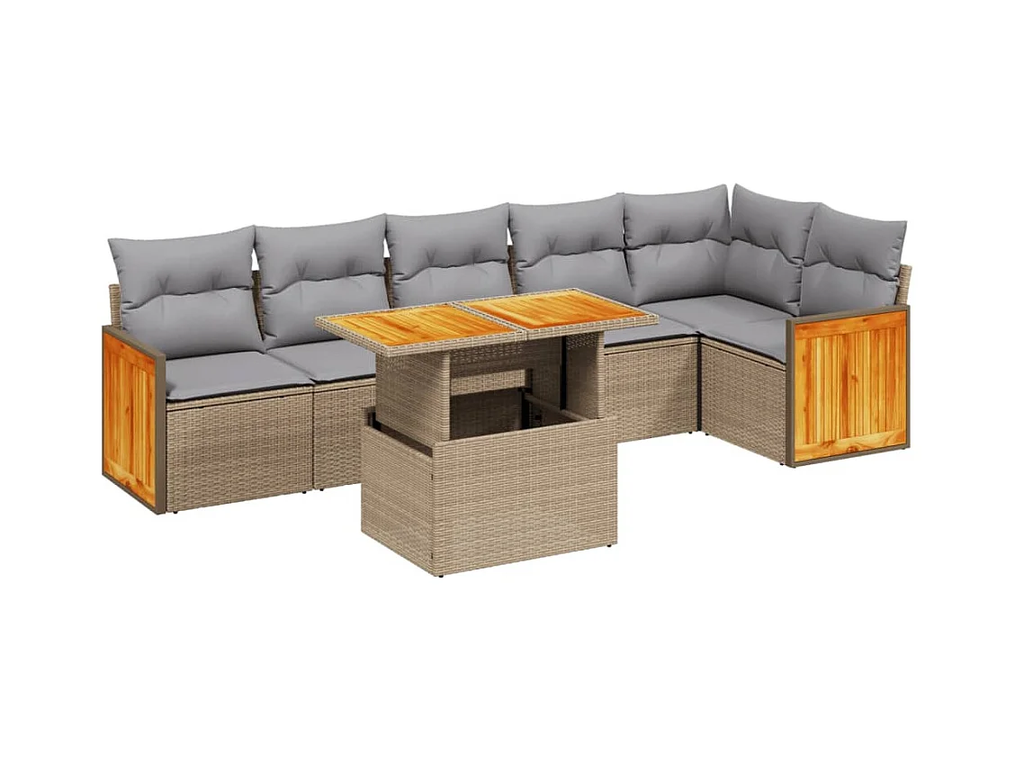 Salon de jardin avec coussins 7 pièces beige résine tressée