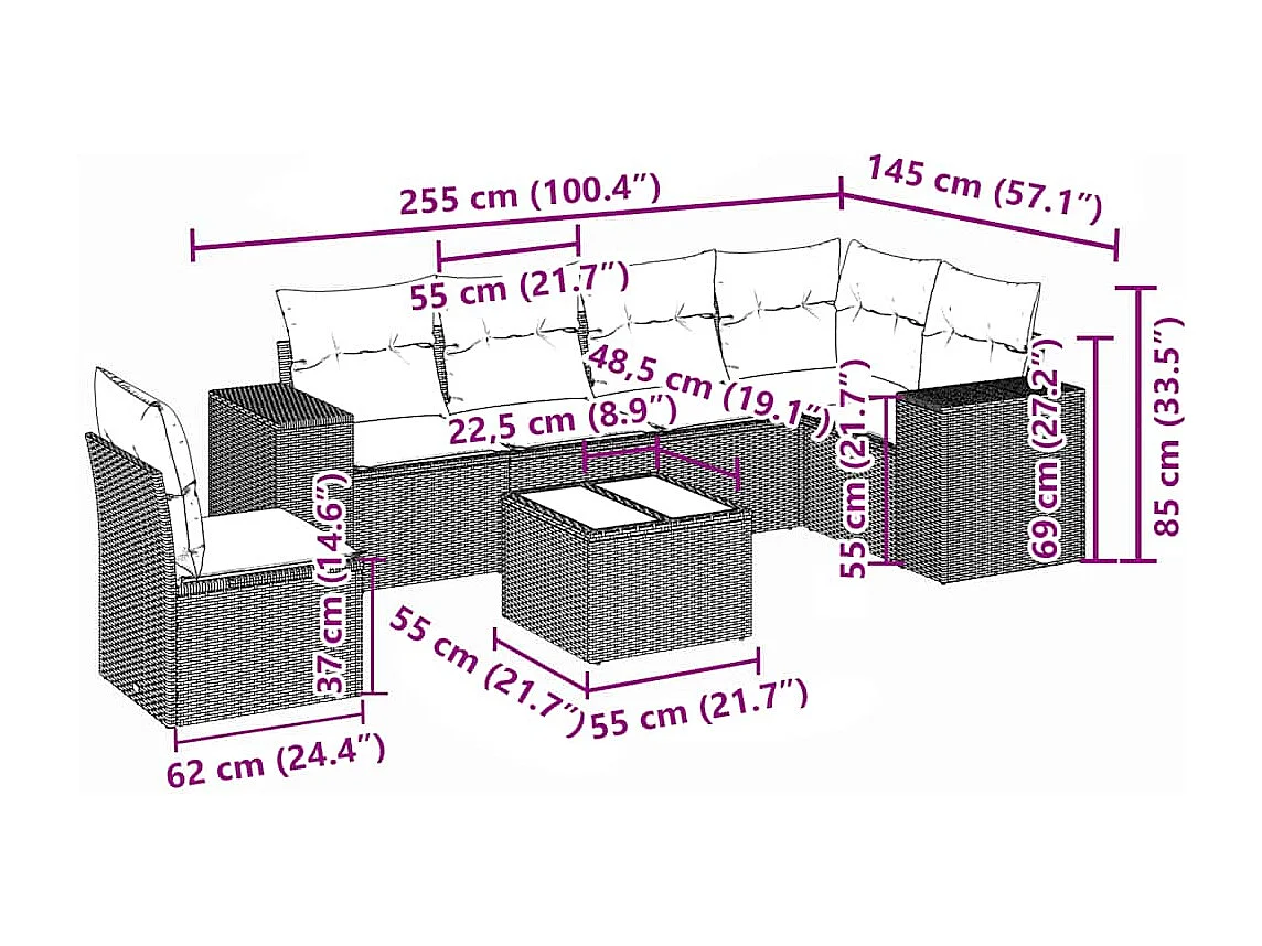 Salon complet de jardin Canapé 2 places et 2 fauteuils