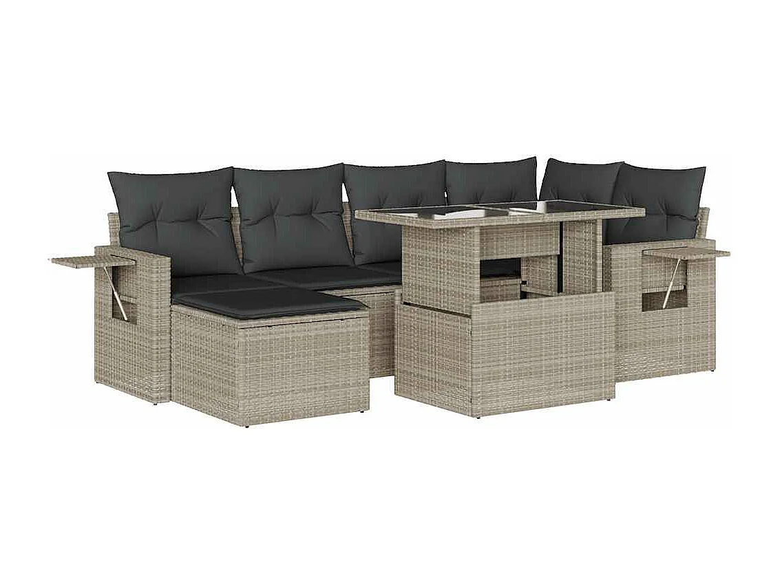 Salon de jardin avec coussins 7 pièces gris clair résine tressée