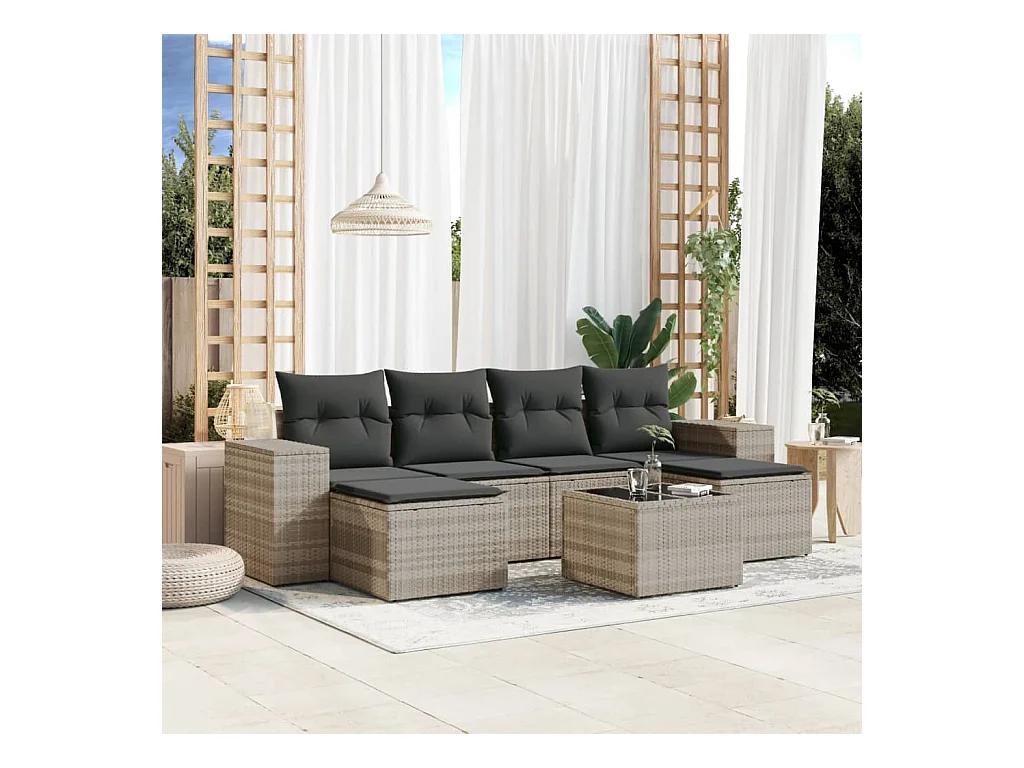 Salon de jardin 6 pièces avec coussins gris clair résine tressée