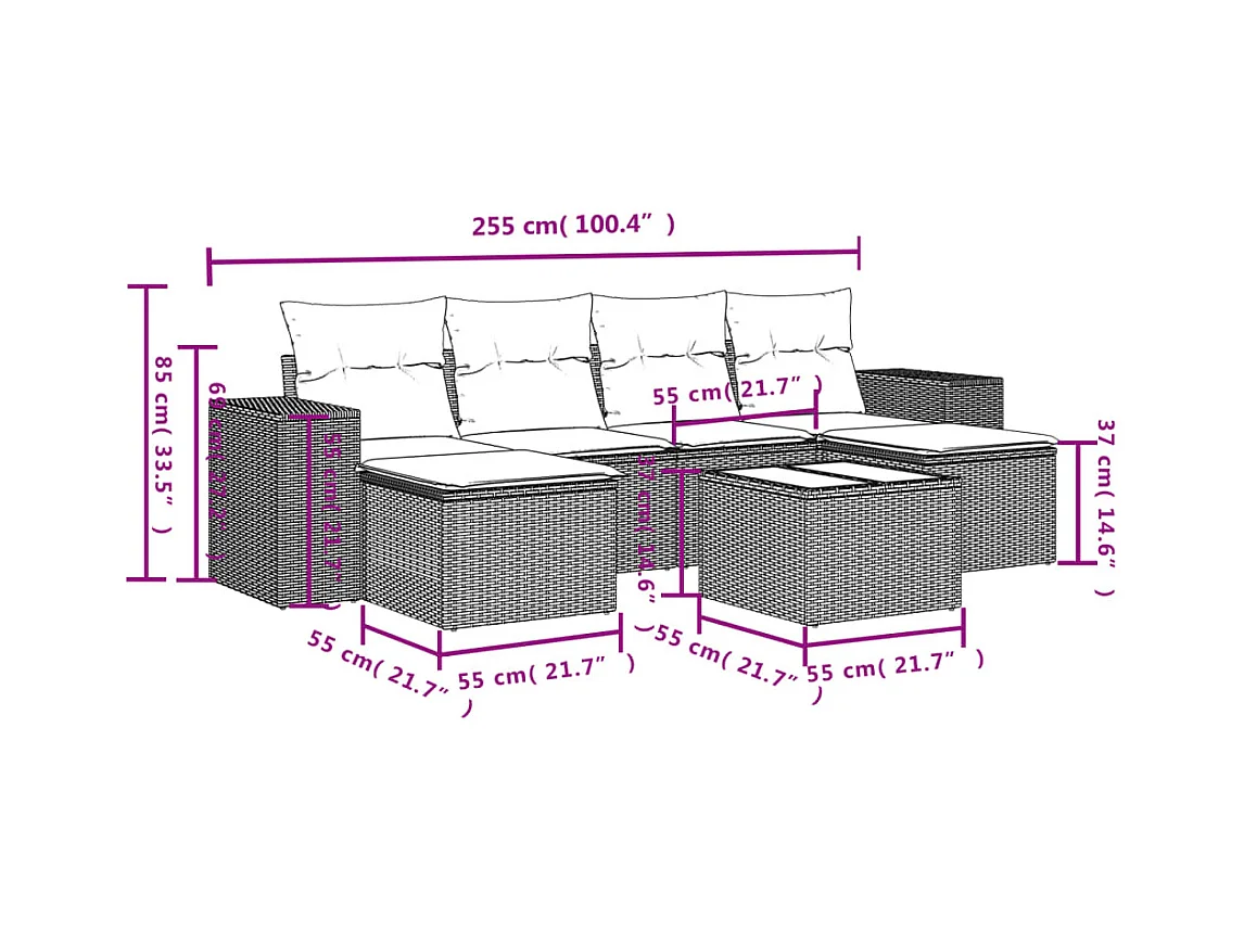 Salon complet de jardin Canapé 2 places et 2 fauteuils