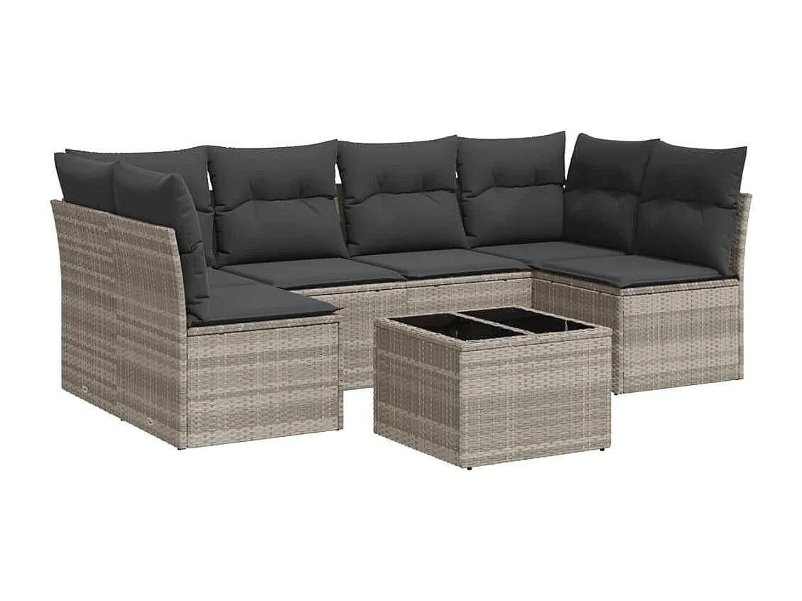 Salon de jardin avec coussins 7 pièces gris clair résine tressée