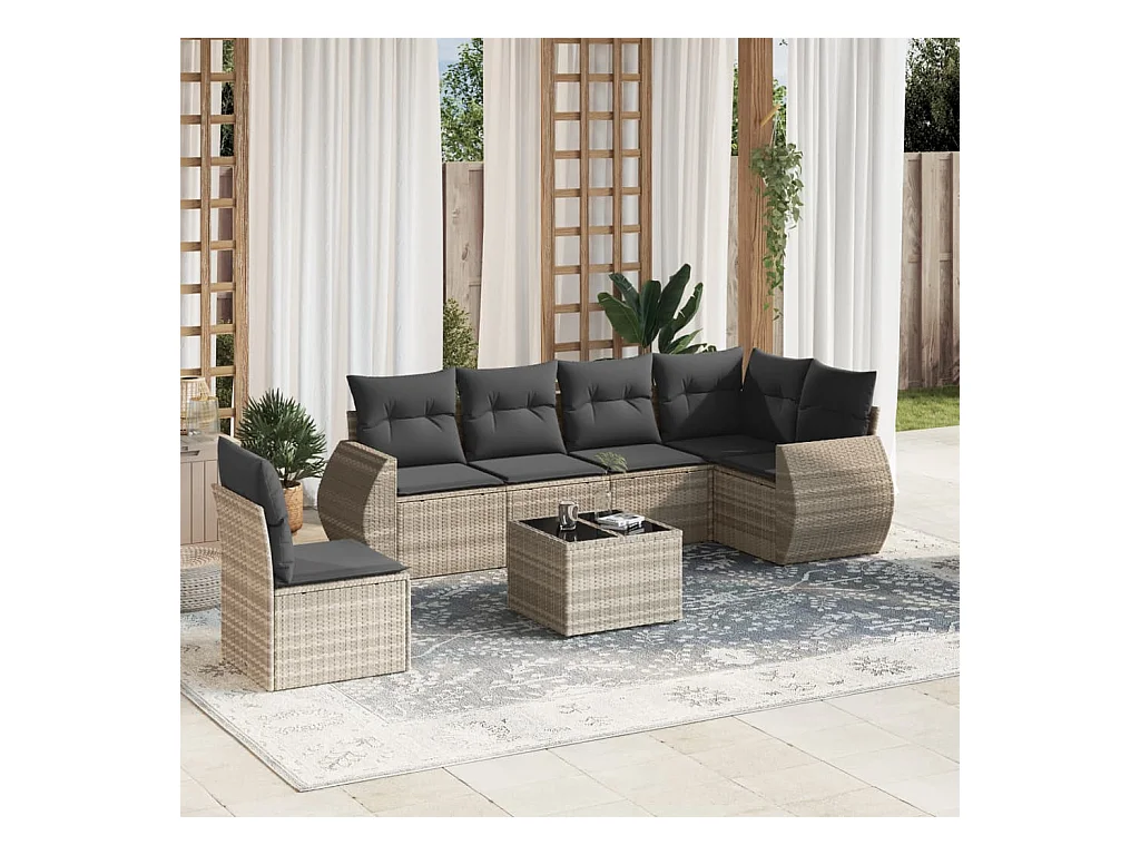 Salon de jardin avec coussins 7 pièces gris clair résine tressée