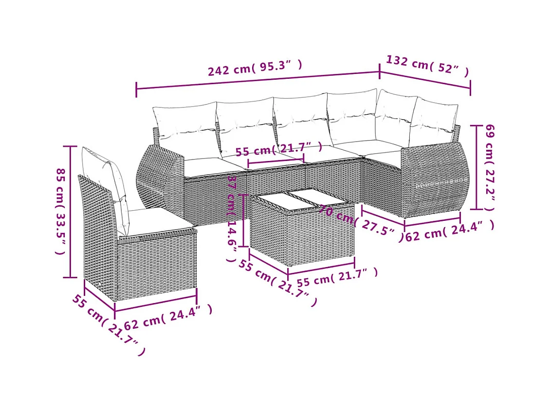 Salon de jardin avec coussins 7 pièces gris résine tressée