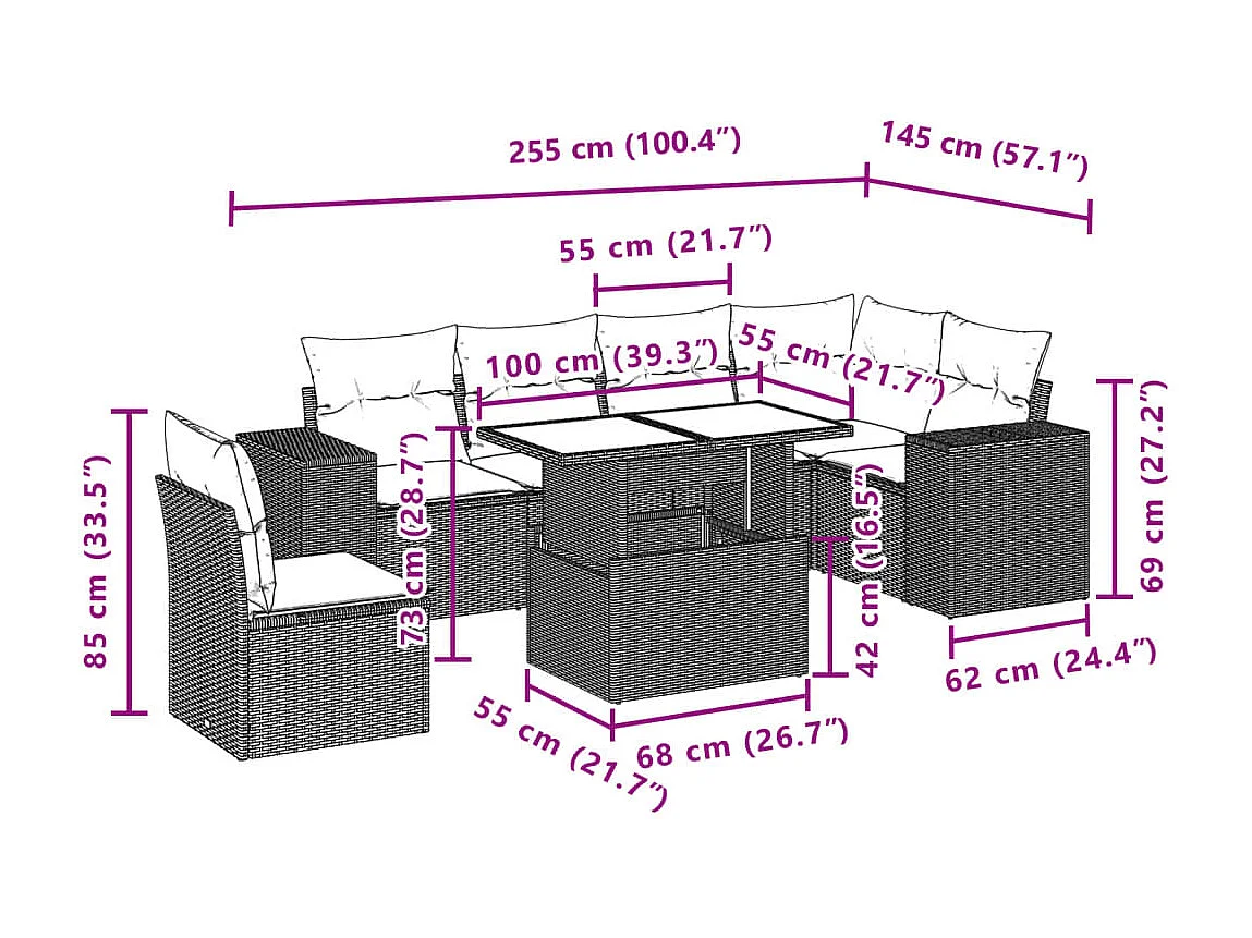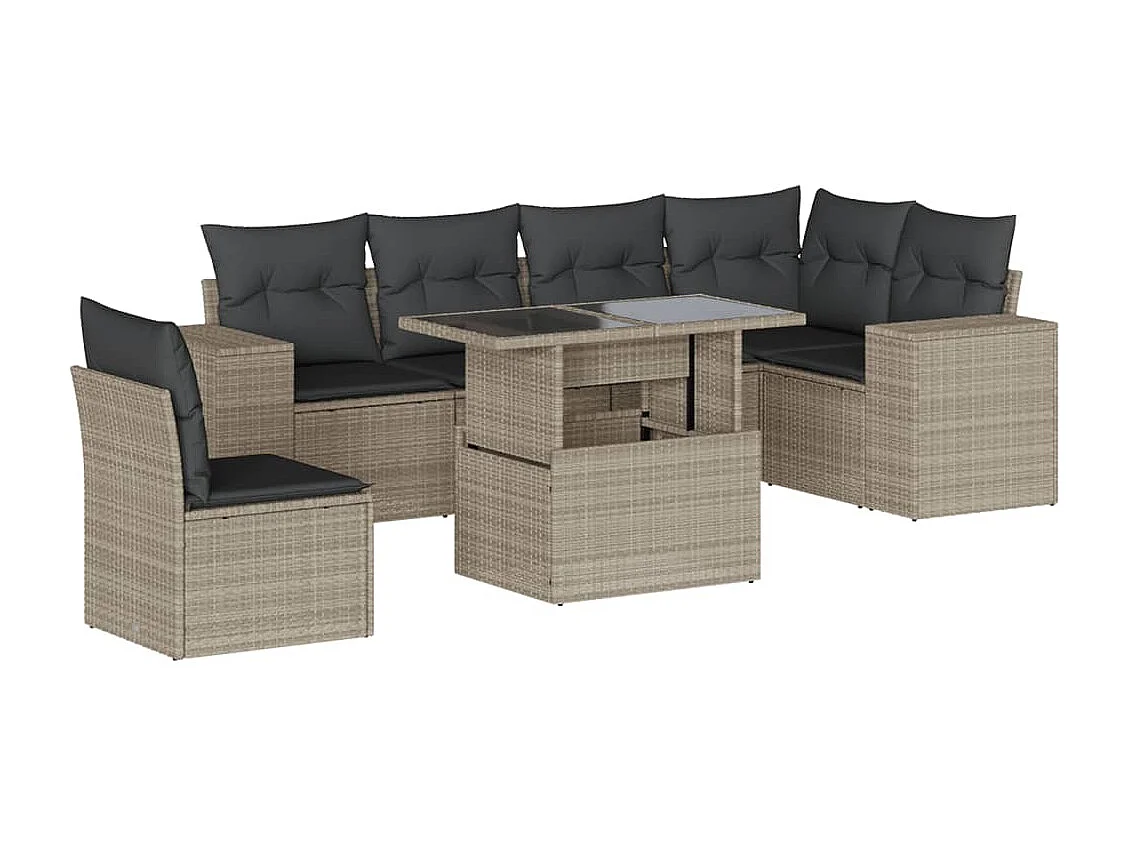 Salon de jardin avec coussins 7 pièces gris clair résine tressée