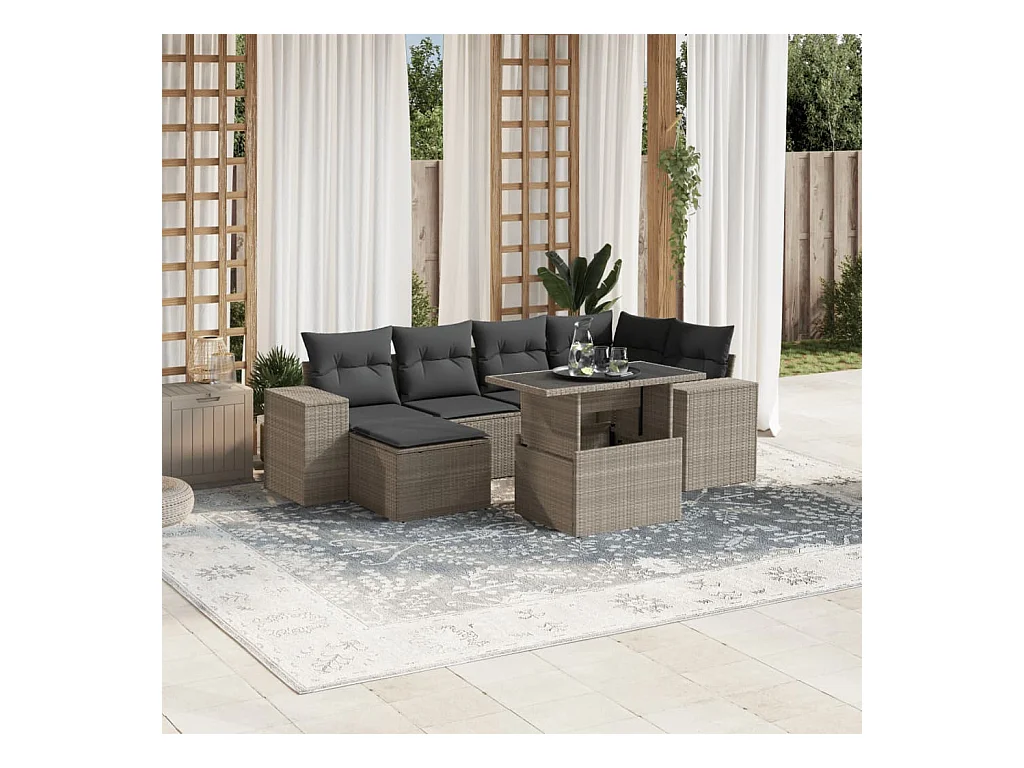 Salon de jardin avec coussins 7 pièces gris clair résine tressée