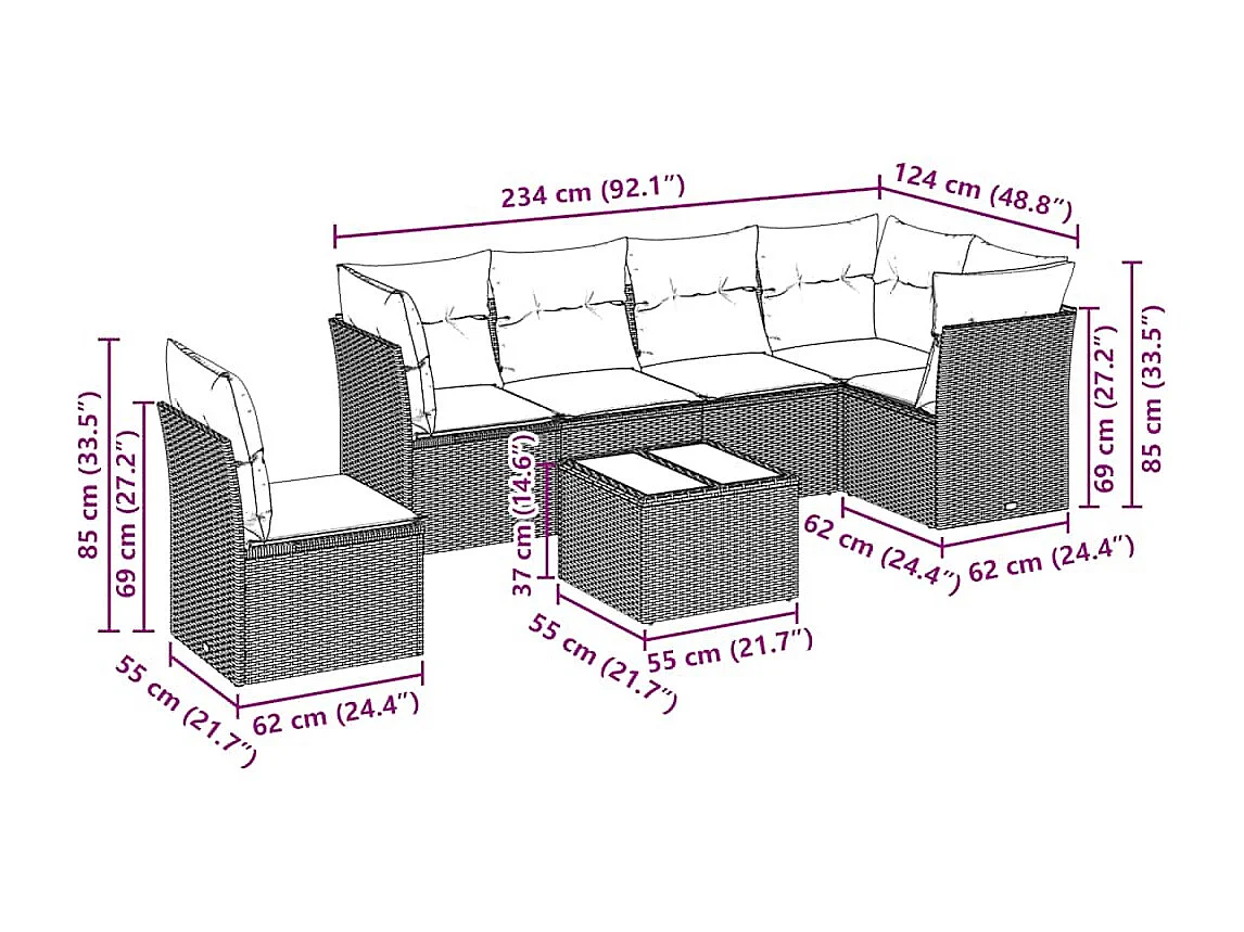 Salon de jardin avec coussins 7 pièces gris clair résine tressée