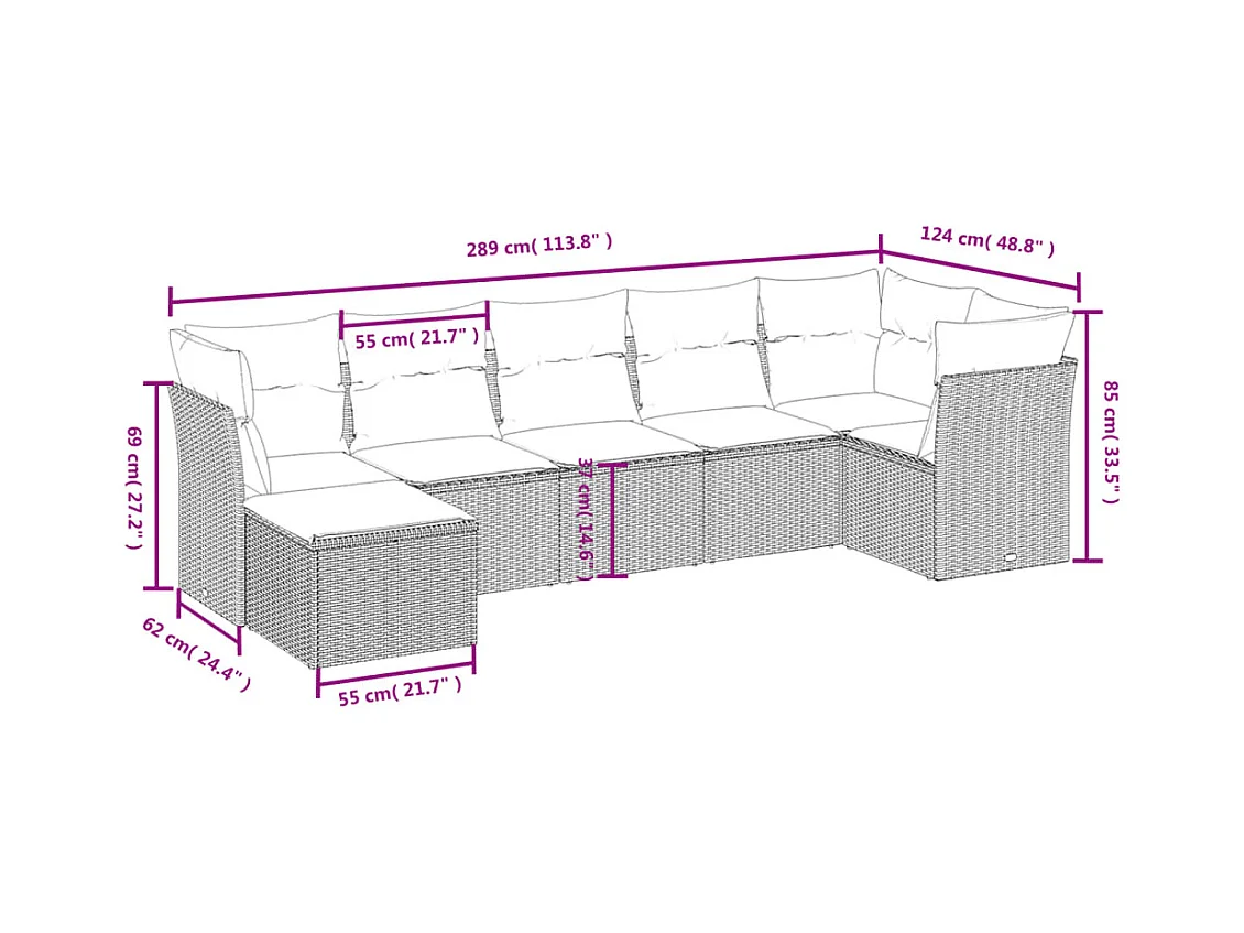 Salon de jardin avec coussins 7 pièces gris clair résine tressée