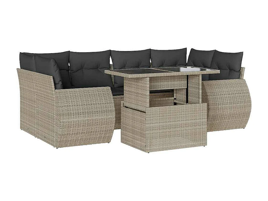 Salon de jardin avec coussins 7 pièces gris clair résine tressée