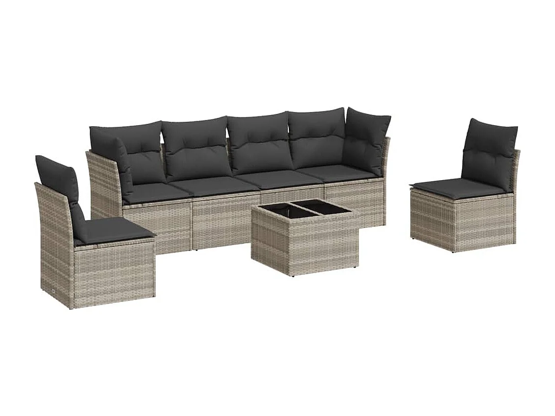 Salon de jardin avec coussins 7 pièces gris clair résine tressée