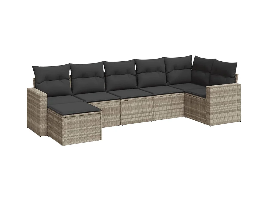 Salon de jardin avec coussins 7 pièces gris clair résine tressée