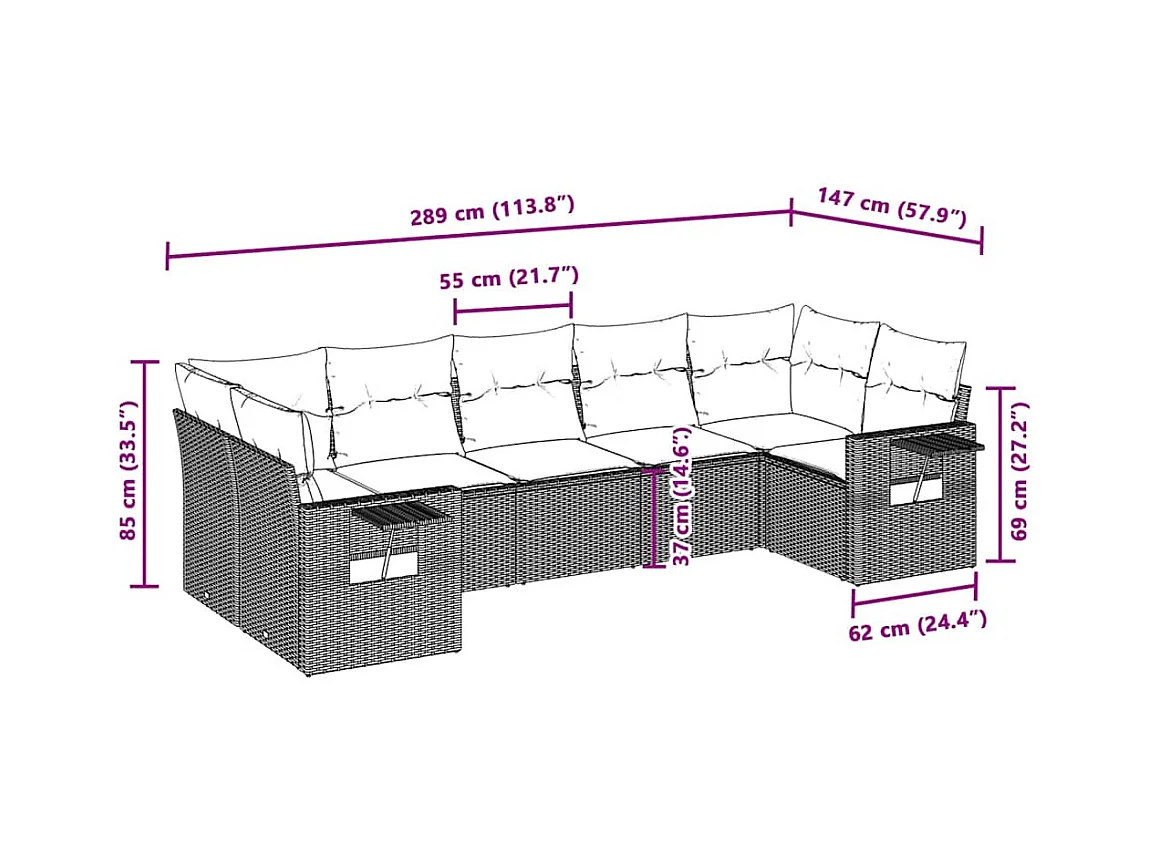 Salon de jardin avec coussins 7 pièces gris clair résine tressée