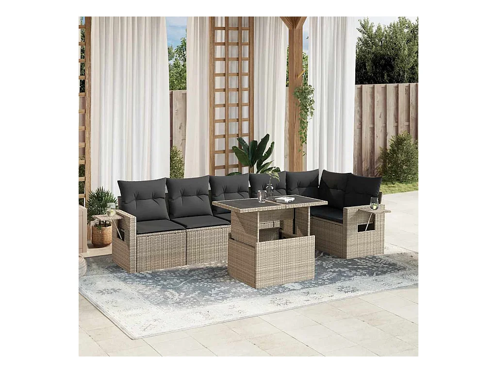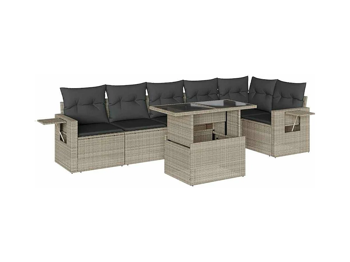 Salon de jardin avec coussins 7 pièces gris clair résine tressée