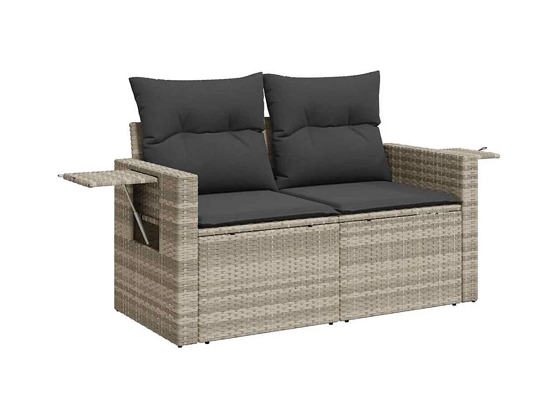 Salon de jardin 8 pièces avec coussins gris clair résine tressée