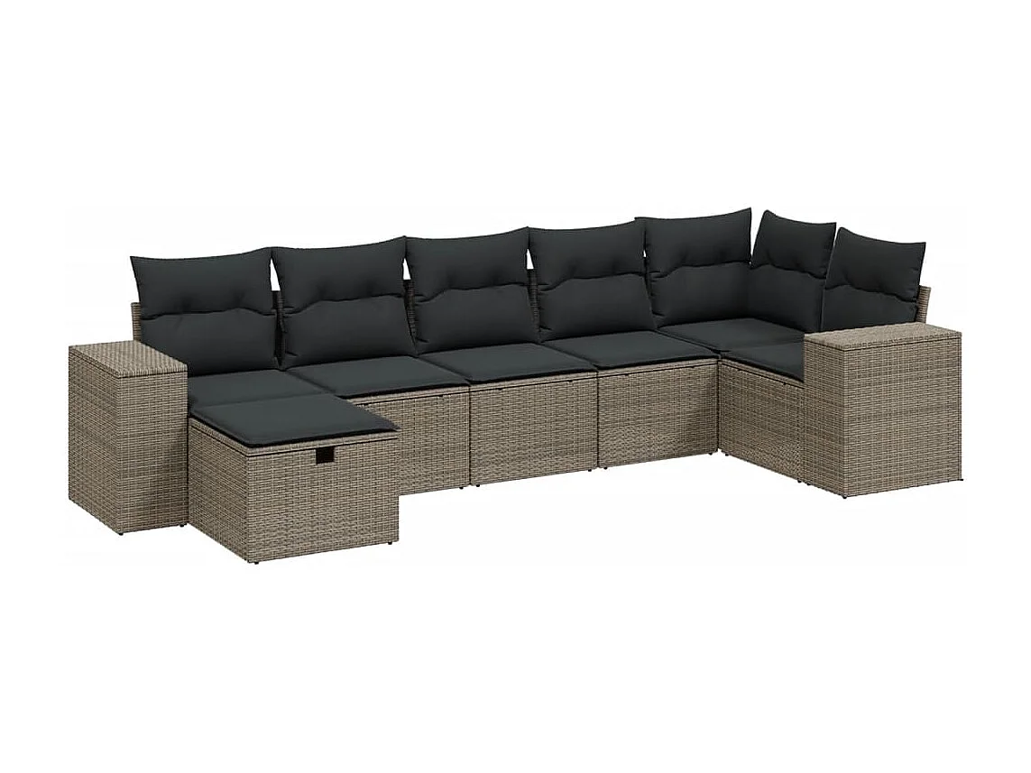 Salon de jardin avec coussins 7 pièces gris clair résine tressée