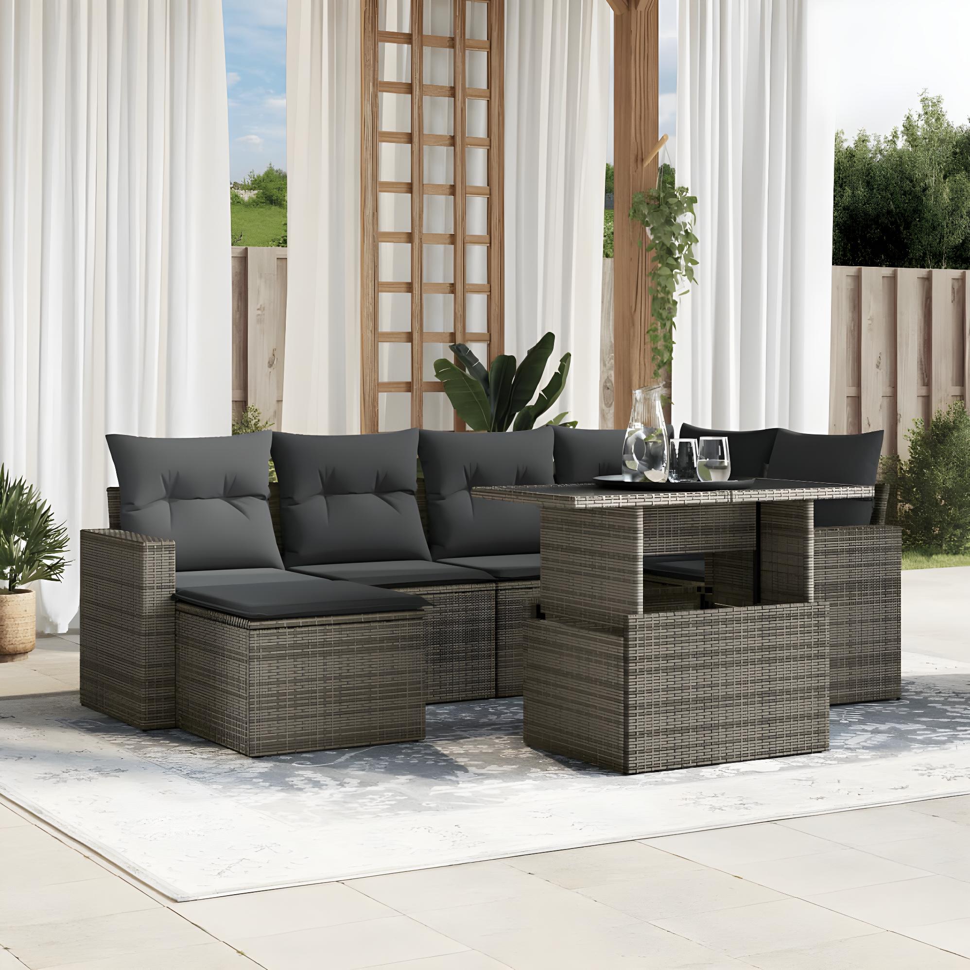 Salon de jardin avec coussins 7 pcs gris résine tressée
